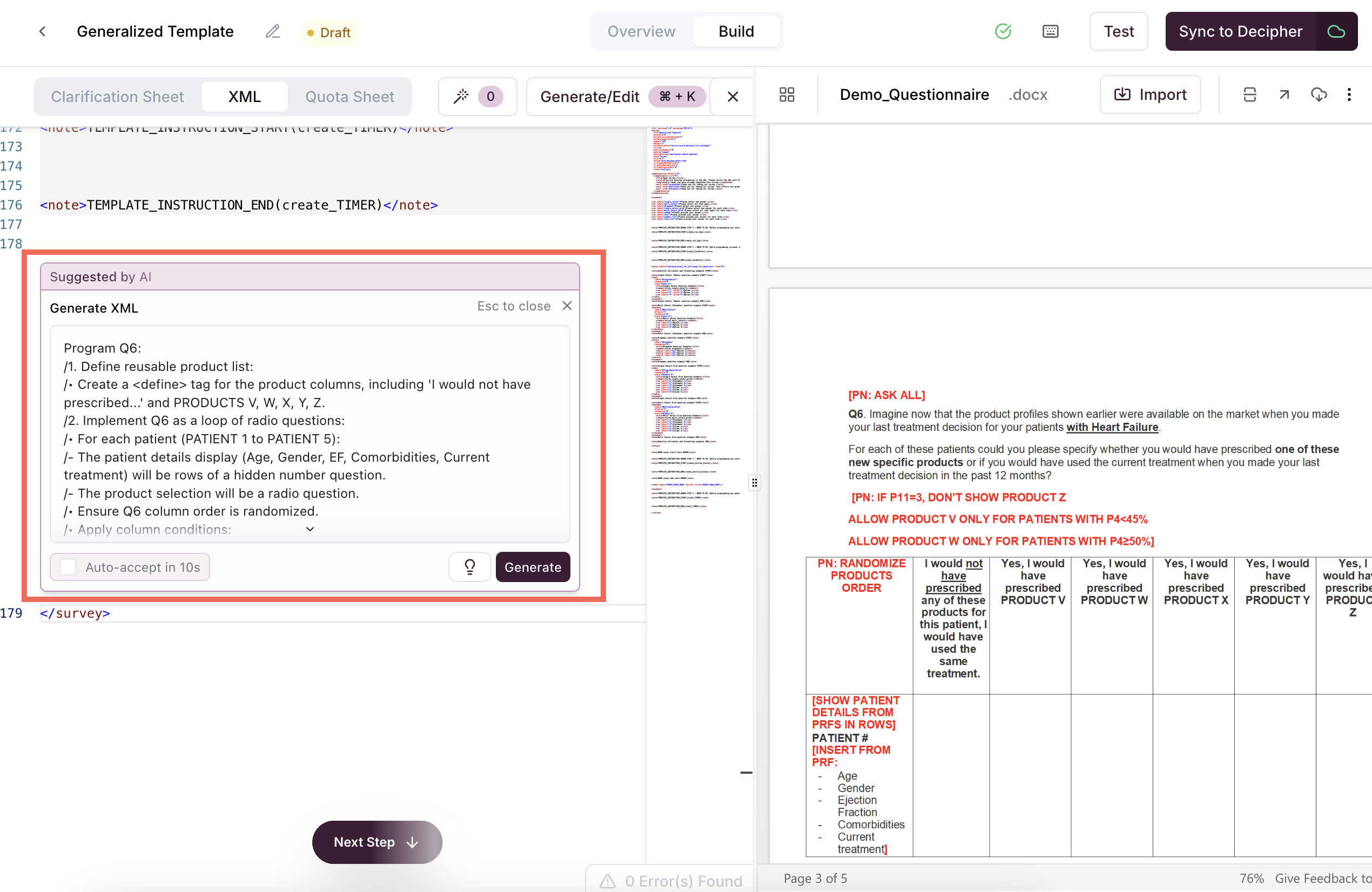 If you want to go full autopilot - especially when you’re working on structured sections like demographics or screeners - just turn on **Auto-Accept**.