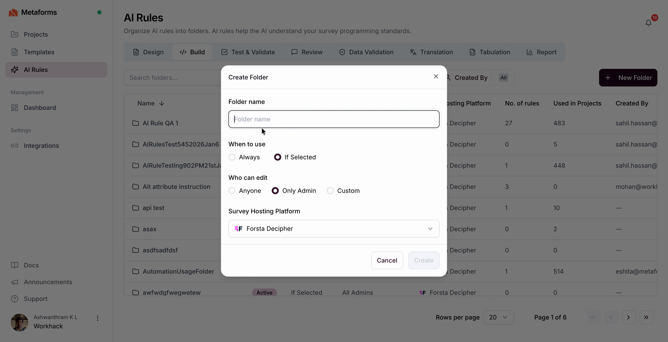 Navigate to the AI Rules from the main menu to view, create, and manage your rule folders.